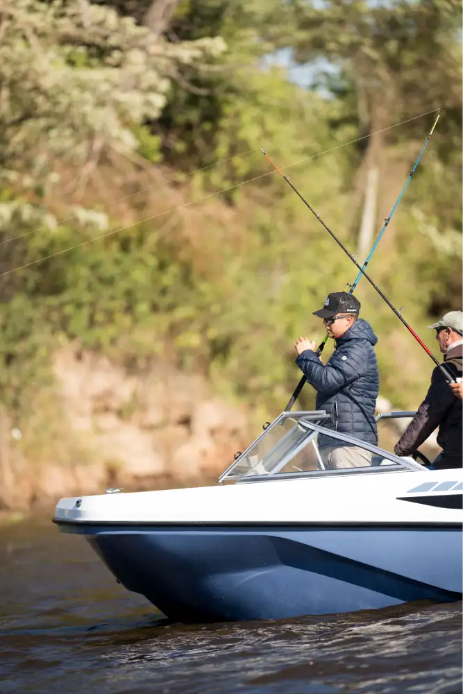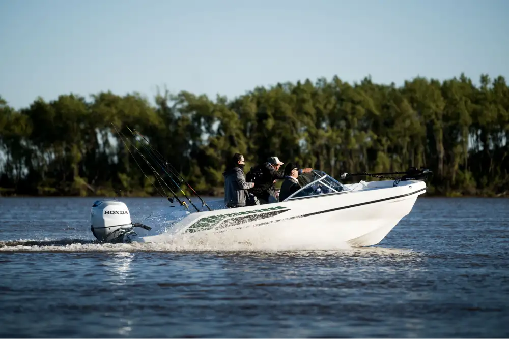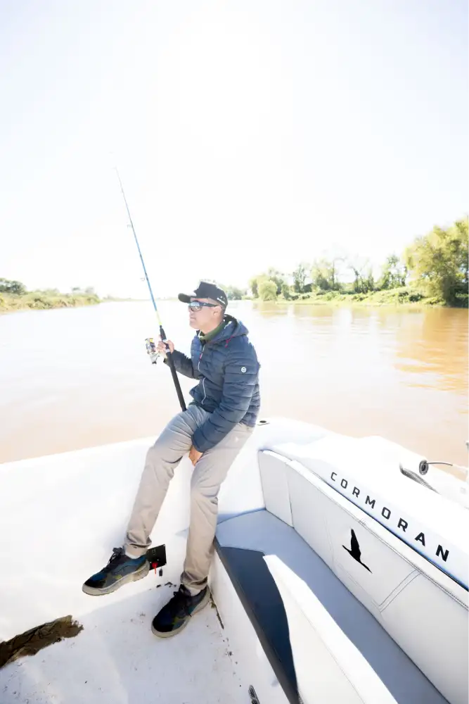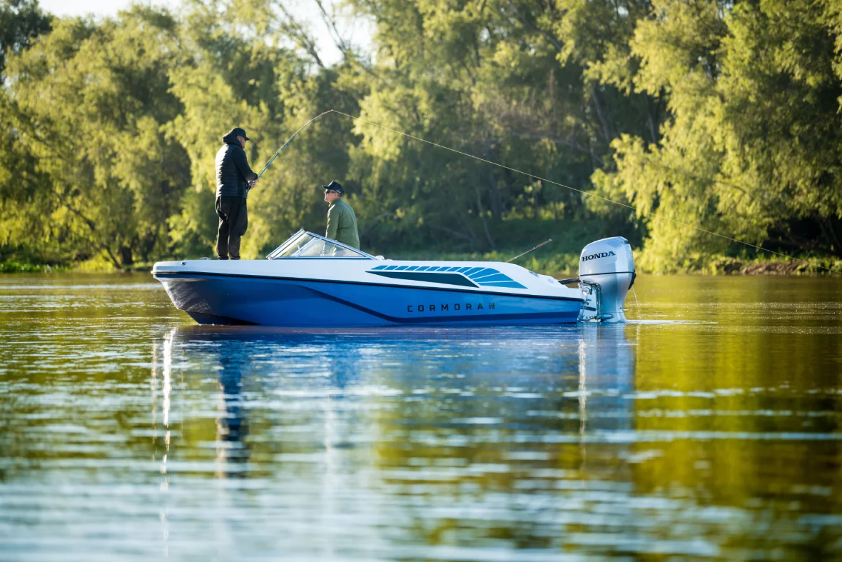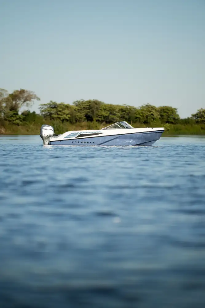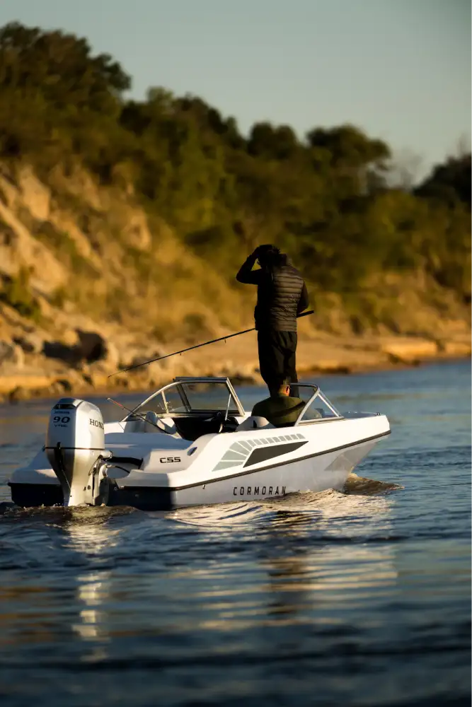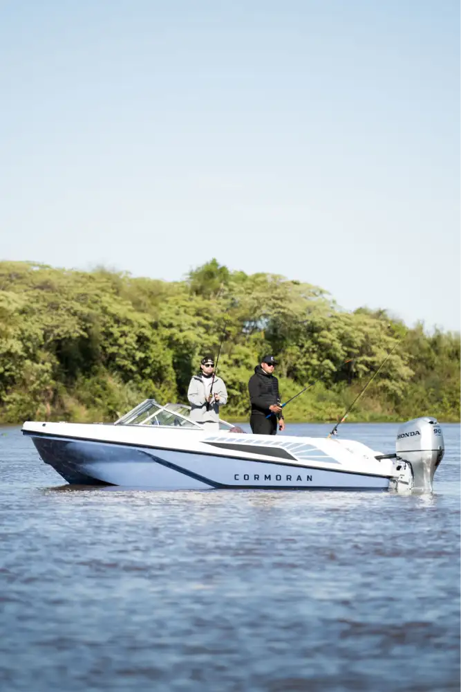 Cormorán C 55 es una embarcación que entra a competir en el segmento de trackers de pesca. La POTENCIA que hemos designado es de 60HP a 115HP, para lo cual hemos tenido el desafío de DISEÑAR una lancha con un fondo cuidadosamente estudiado para lograr las mejores sensaciones al momento de navegar, dejando atrás comportamientos habituales a los que los usuarios están acostumbrados en este segmento, como el arrastre al momento de maniobrar o el golpe constante en situaciones de viento y/u oleaje, logrando una navegación mucho más ágil, fluida y placentera.